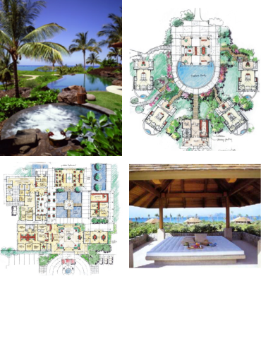 The initial design includes 50 Bungalows and private Cottages of 600 sf each, a Reception Building Each unit is to have fantastic views, cutting-edge bath with the latest bathing components and design features. There are to be pools, Jacuzzis, private covered terraces and gardens as part of each unit. The project is to incorporate Feng Shui design philosophies and components within each design aspect and element.