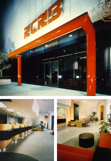 • NCNB Bank, Coral Gables Branch: 6,000 SF branch bank for North Carolina National Bank (NCNB). The facility was awarded recognition for its use of Graphics and Signage as part of the integrated architectural interiors design.