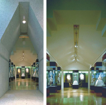 The space is accented by natural lighting throughout the space that accents architectural features of the museum.